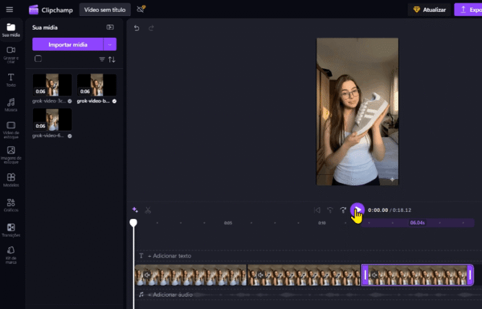 Basta importar os vídeos, colocar na timeline e ajustar os cortes para deixar o vídeo mais dinâmico. O ideal é criar vídeos curtos, entre 10 e 15 segundos, que funcionam muito bem nas redes sociais.