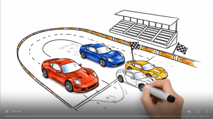 Também fiz um comando pedindo para ele fazer o Efeito mão desenhando criando um videozinho de corridas de carros coloridos. O resultado foi igual da imagem abaixo: